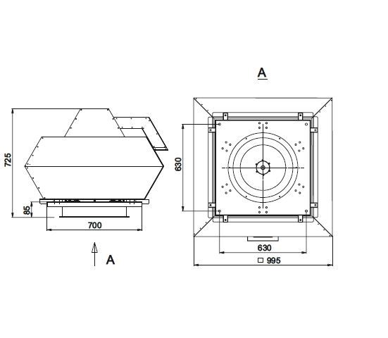Вентилятор состоит из: сварного корпуса, защитного кожуха из оцинкованной стали, рабочего колеса с назад загнутыми листовыми лопатками, асинхронного двигателя.